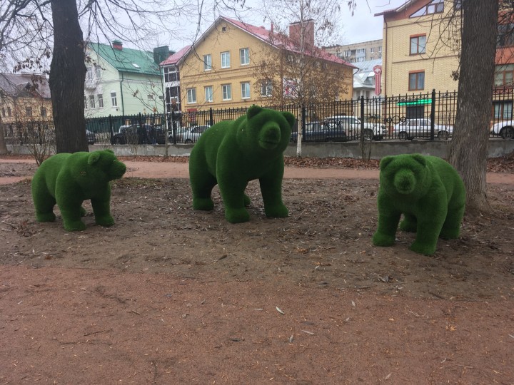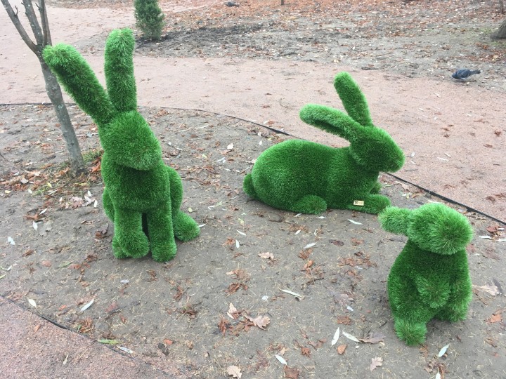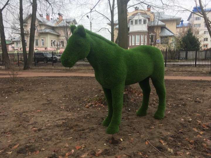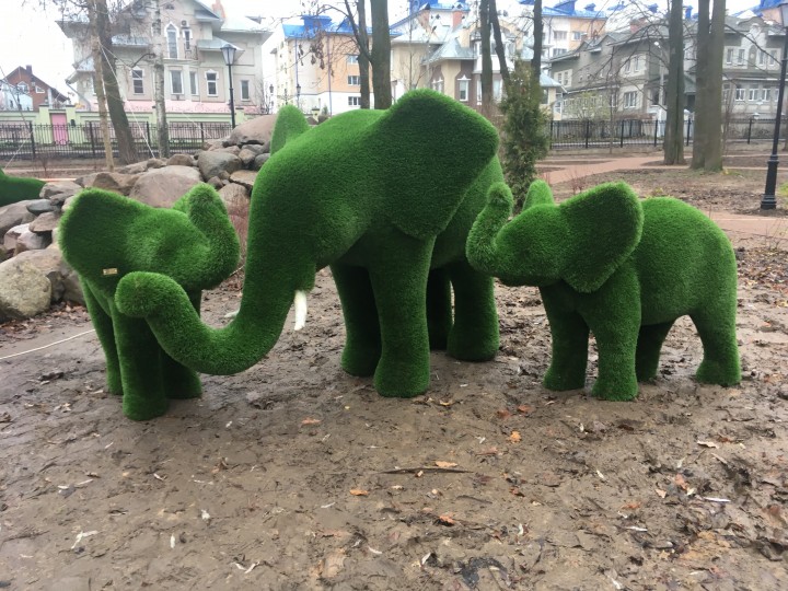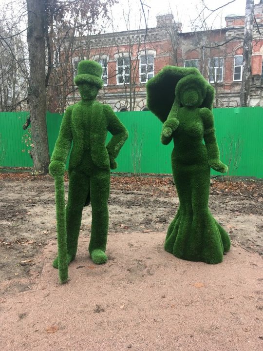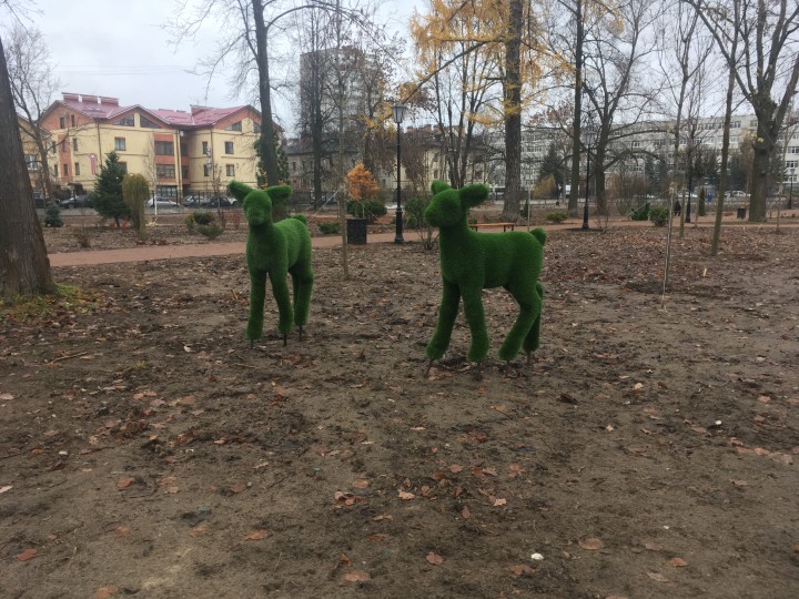 Они появились в Карякинском парке. Вдоль дорожек уже разместились фигуры мужчины и женщины, а также животных: слонов, лошади, зайцев, льва, медведя, оленей и других.