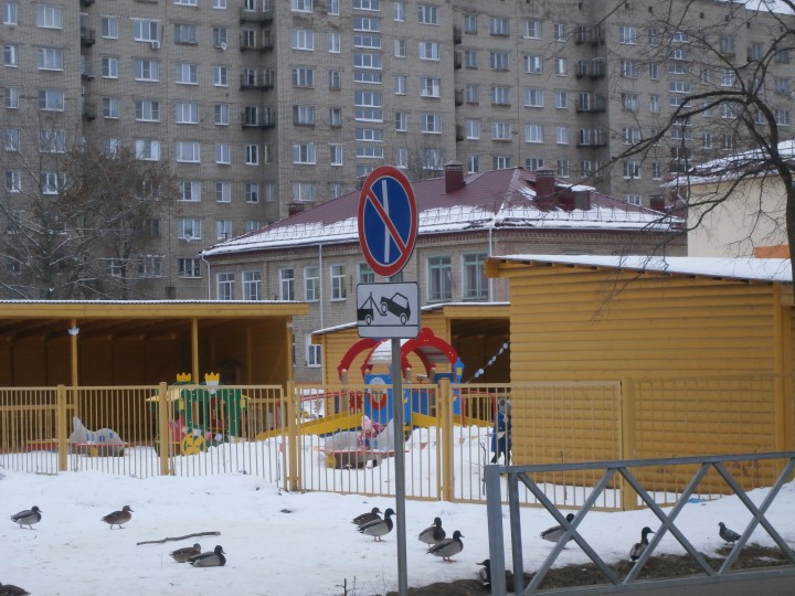 Накануне у детского сада № 10 появился знак 3.29, который запрещает парковку машин по нечетным числам месяца. В связи с этим транспорт эвакуируют на спецстоянку.