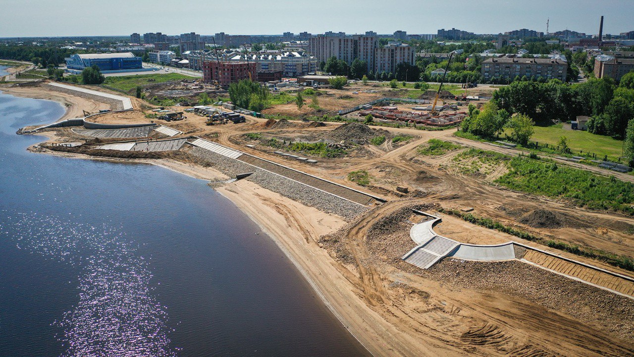 Работы по берегоукреплению начались здесь летом 2022 года и завершились в ноябре 2023 года. Общая протяженность участка с берегоукреплением составила 1132 метра.