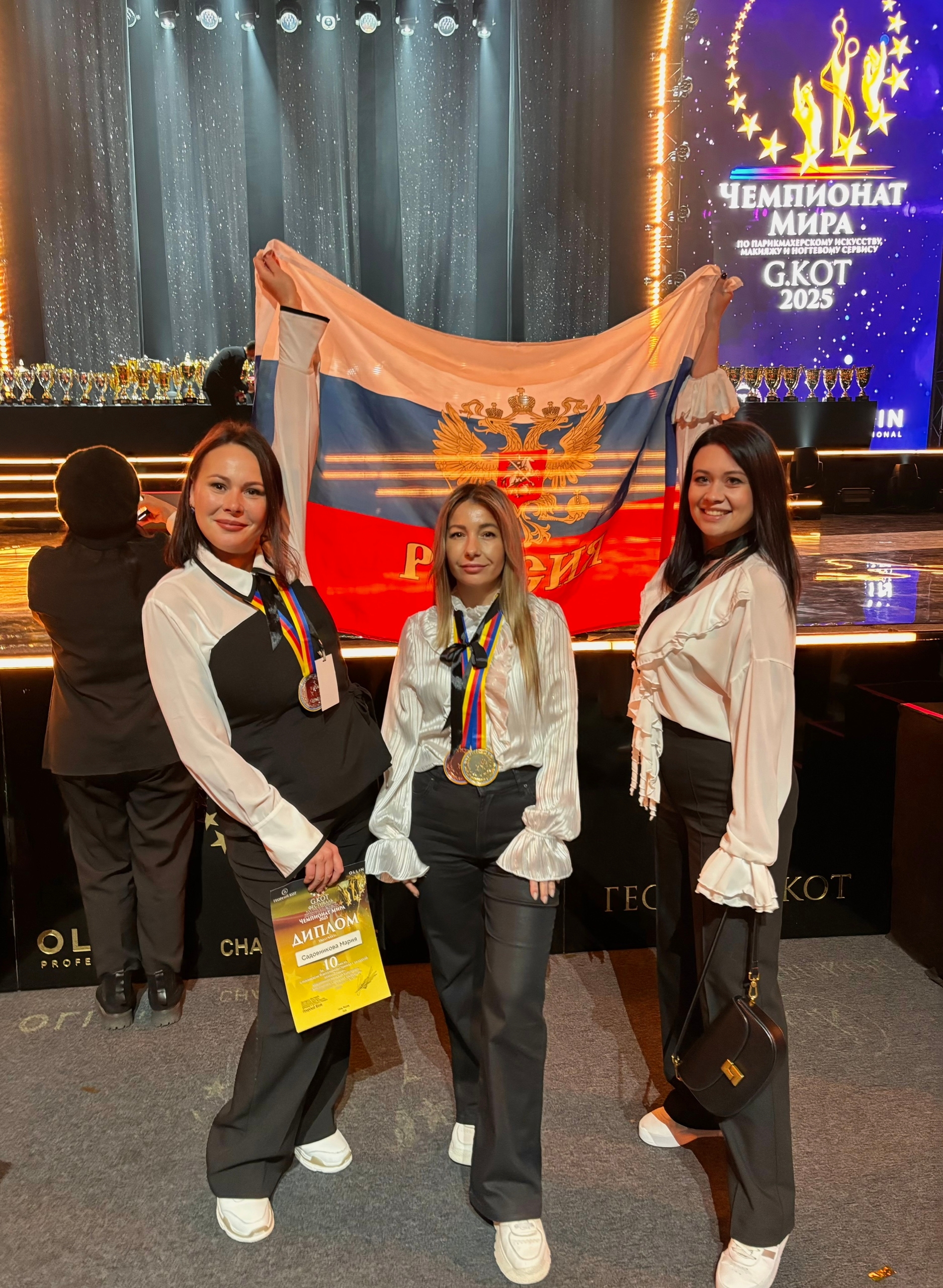 Екатерина Соловьева взяла золото в номинации «Имидж reels», а также бронзу в номинации «Креативная стрижка с укладкой». Мария Садовникова заняла 2 место в номинации «Градуированное «Каре» с укладкой», она также, вместе с Лилией Мурзиной из Рыбинска, вошла в десятку лучших мастеров Мира-2025.