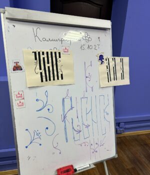 На ней будут представлены работы учеников, которые занимаются искусством письма во Дворце молодежи.