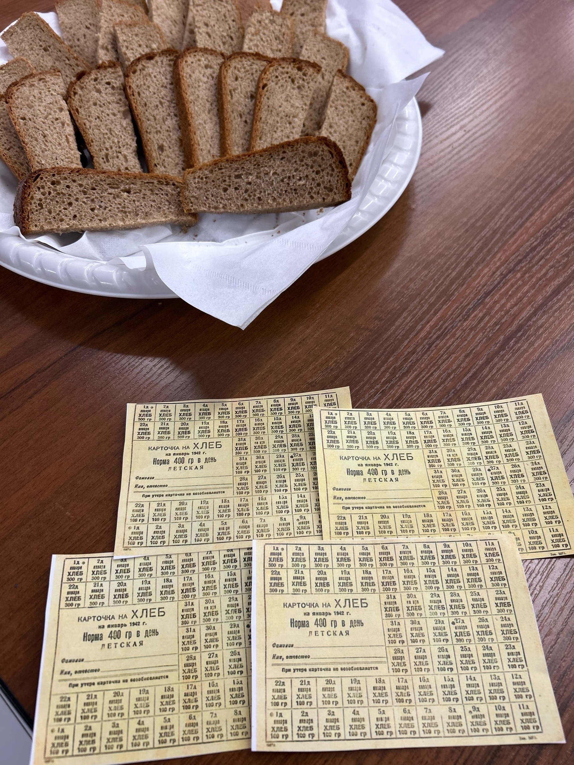 С 18 по 27 января посетители Дворца молодёжи получали от волонтёров небольшой кусочек хлеба и информационные карточки. В карточках рассказывали о том, как проходила блокада Ленинграда.