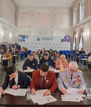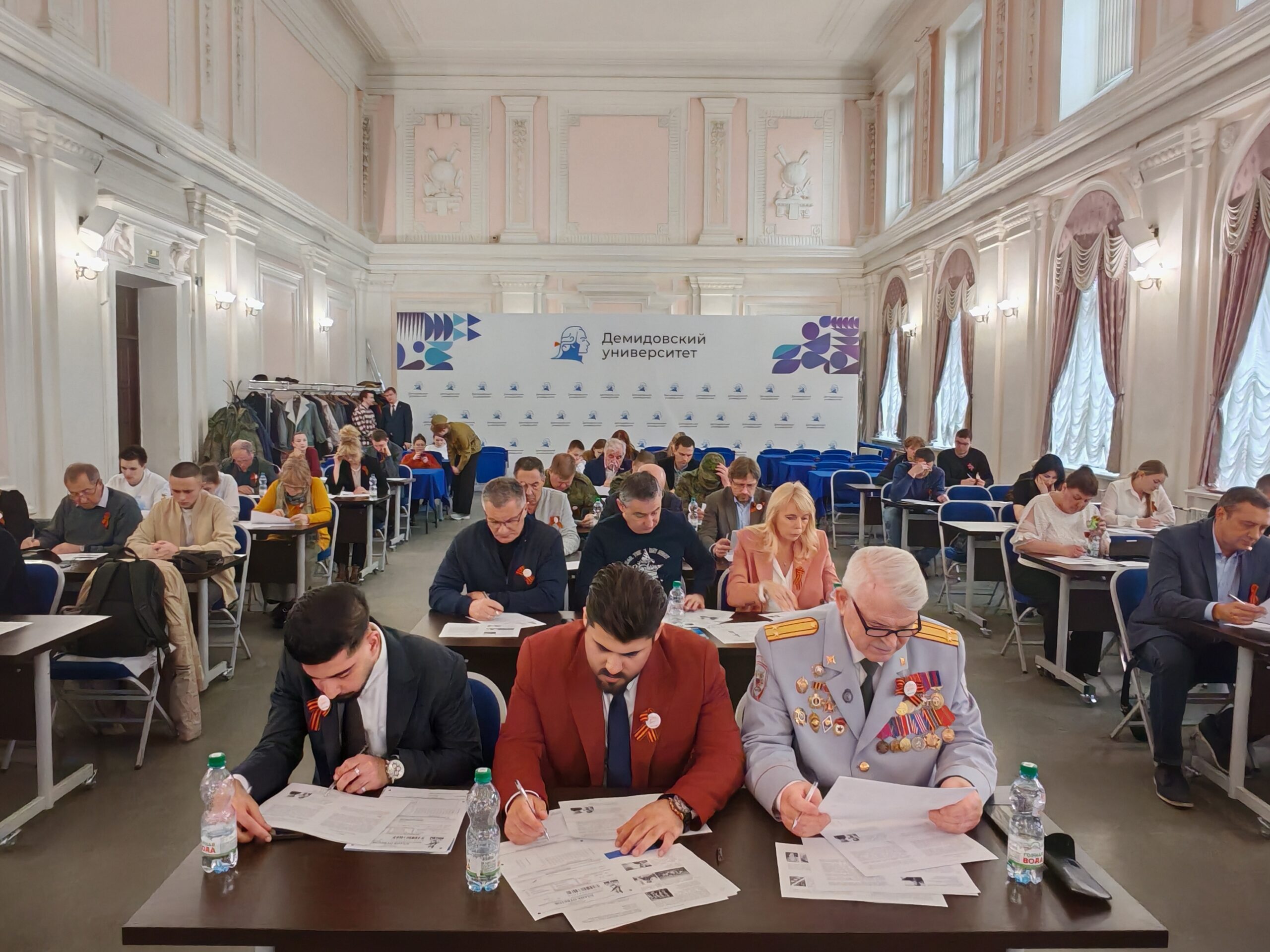 Как и в предыдущие годы, центральной площадкой «Диктанта Победы» в Ярославской области стал Музей боевой славы. Здесь свои знания по истории Великой Отечественной войны проверили сотрудники Росгвардии, ветераны СВО и участники кадровой программы «Герои Ярославии», ребята из «Юнармии», а также ветеран Великой Отечественной войны Михаил Пеймер.
